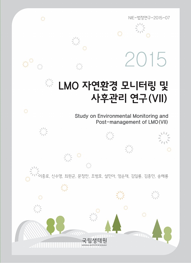 2015 NIE-법정연구-2015-07 LMO 자연환경 모니터링 및 사후관리 연구 VII Study on Environmental Monitoring and Post-management of LMO VII 이중로, 신수영, 최원균, 문정찬, 조범호, 설민아, 엄순재, 김일룡, 김종민,송해룡