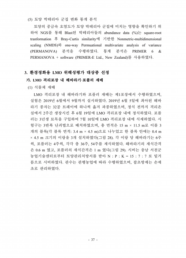 제목 : (2019년) 환경부 소관 LMO 위해성평가 체계 구축 및 평가기관 운영