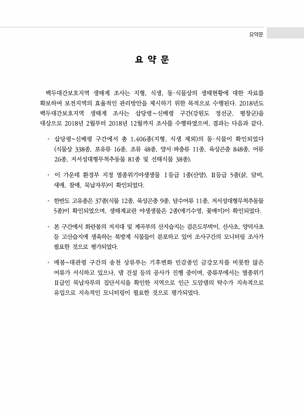 제목 : (2018) 백두대간보호지역 생태계 조사.삽당령~신배령
