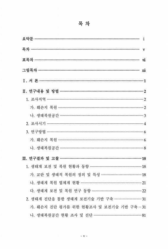 v 목 차 요약문 ················································································································ ⅰ 목차 ···················································································································· ⅴ 표목차 ················································································································ ⅶ 그림목차 ·····························...
