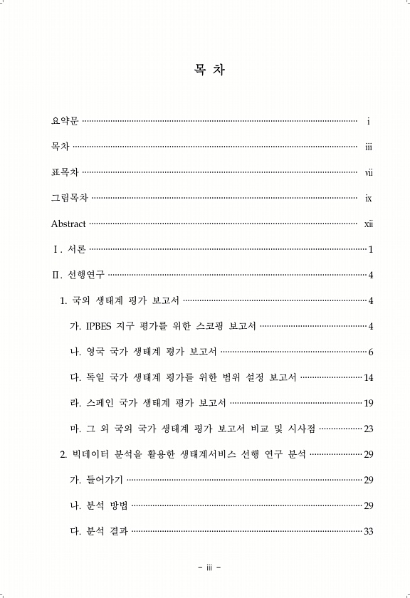 iii 목 차 요약문 ····················································································································· ⅰ 목차 ························································································································· ⅲ 표목차 ····················································································································· ⅶ 그림목차 ············...
