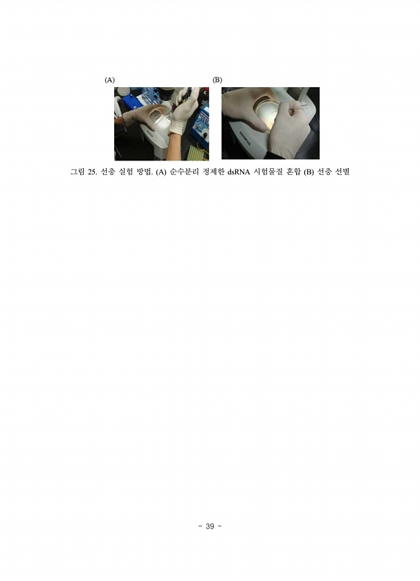 39 그림 25. 선충 실험 방법. A 순수분리 정제한 dsRNA 시험물질 혼합 B 선충선별
