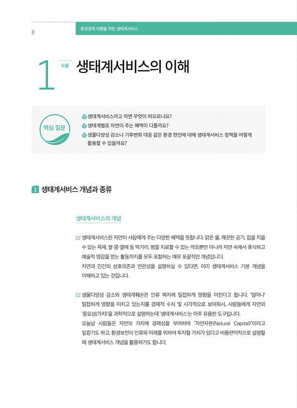 제목 : 환경정책 이행을 위한 생태계서비스 : 공무원용 생태계서비스 교육교재
