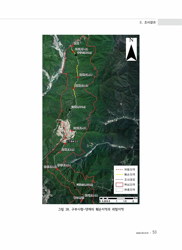 Ⅱ. 조사결과 www.nie.re.kr ? 53 그림 28. 구부시령댓재의 훼손지역과위험지역