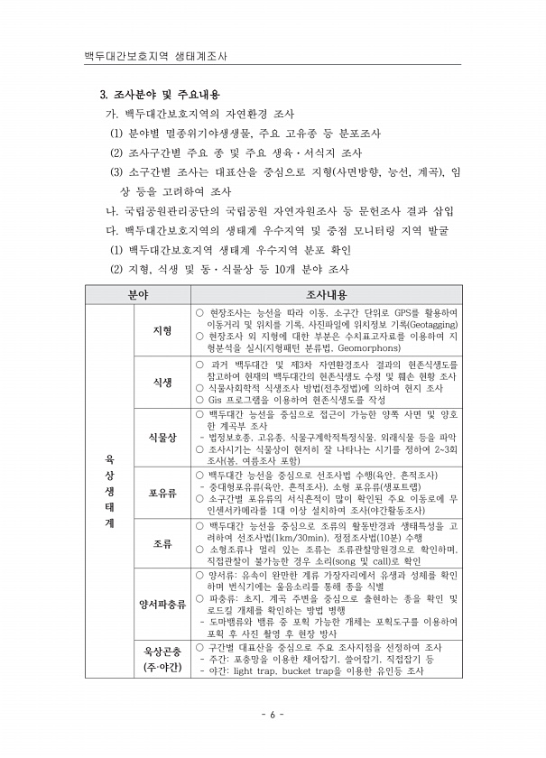 제목 : (2018) 백두대간보호지역 생태계 조사.삽당령~신배령