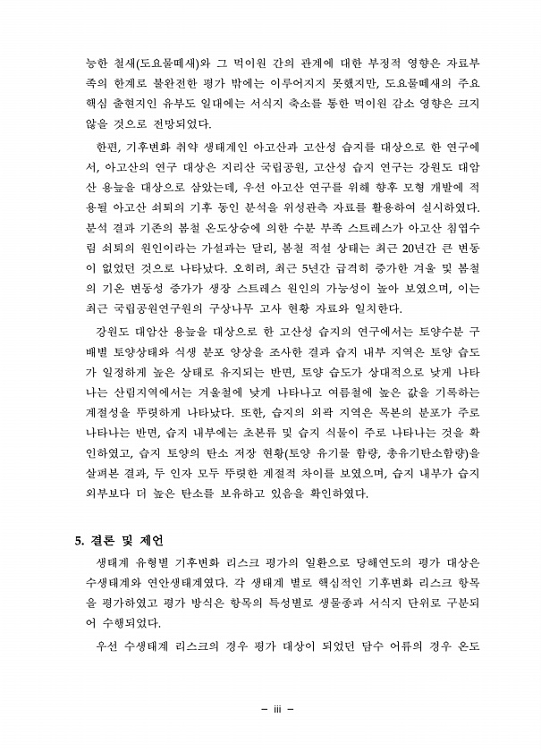 제목 : (2019) 생태계 기후변화 리스크 평가 및 적응대책 연구