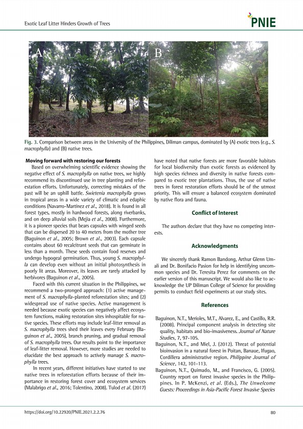 80 Moving forward with restoring our forests Based on overwhelming scientific evidence showing the negative effect of S. macrophylla on native trees, we highly recommend its discontinued use in tree planting and reforestation efforts. Unfortunately, correcting mistakes of the past will be an uphill battle. Swietenia macrophylla grows in tropical areas in a wide variety of climatic and edaphic cond...