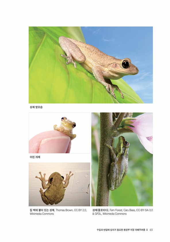 수입과 반입에 심사가 필요한 환경부 지정 위해우려종 Ⅱ 65 어린 개체 집 벽에 붙어 있는 성체. Thomas Brown, CC BY 2.0, Wikimedia Commons 성체 플로리다 Fern Forest. Cary Bass, CC-BY-SA-3.0 & GFDL, Wikimedia Commons 성체옆모습
