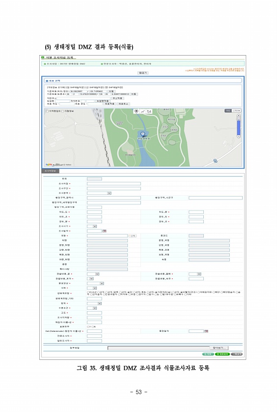 53 5 생태정밀 DMZ 결과 등록 식물 그림 35. 생태정밀 DMZ 조사결과 식물조사자료등록
