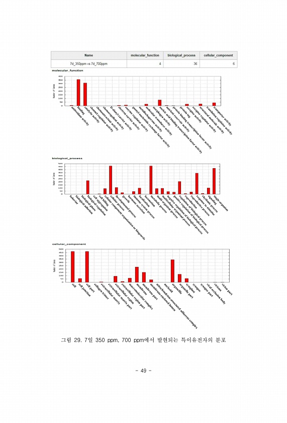 49 그림 29. 7일 350 ppm, 700 ppm에서 발현되는 특이유전자의분포