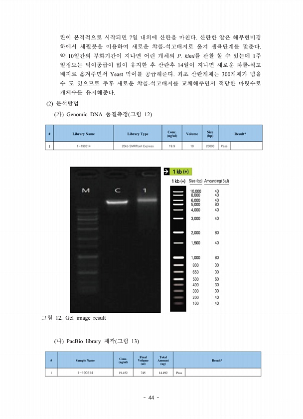 44 7 10 P. kimi 1 14 Yeast 300 2 Genomic DNA 12 12. Gel image result PacBio library 13