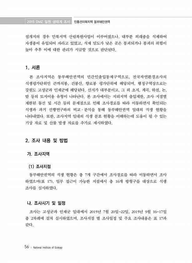 제목 : (2015) DMZ 일원 생태계 조사 :민통선이북 동부해안권역
