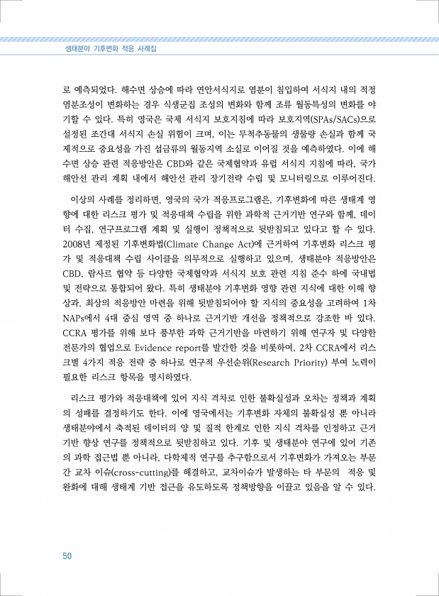 제목 : 생태분야 기후변화 적응 사례집 : 국내외 생태분야 기후변화 적응방안의 흐름과 발전방향
