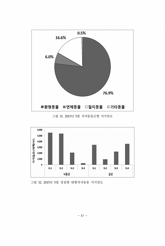 51 그림 31. 2015년 5월 저서동물군별 서식밀도 그림 32. 2015년 5월 정점별 대형저서동물서식밀도