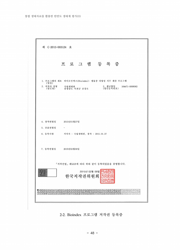 48 프로그램 저작권 등록증 통합 생태자료를 활용한 한반도 생태계 평가 II