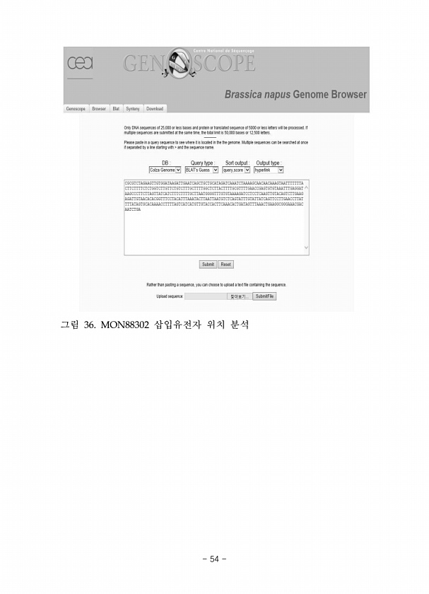그림 36. MON88302 삽입유전자 위치 분석 54