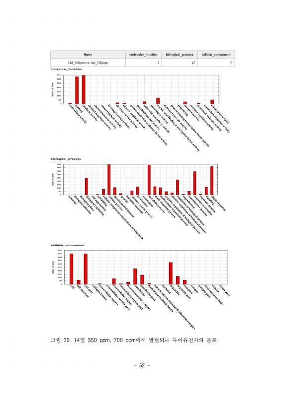 52 그림 32. 14일 350 ppm, 700 ppm에서 발현되는 특이유전자의분포