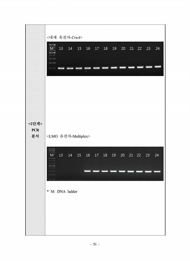 51 2단계 PCR 분석 내재 유전자-CruA LMO 유전자-Multiplex * MDNAladder