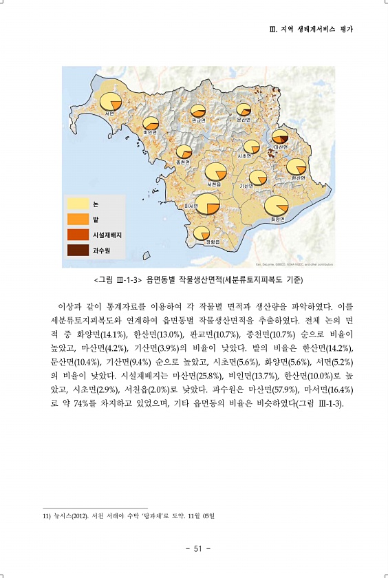 제목 : 지속가능한 국토이용을 위한 생태계서비스 (생태가치) 평가. [2],공급서비스 >
