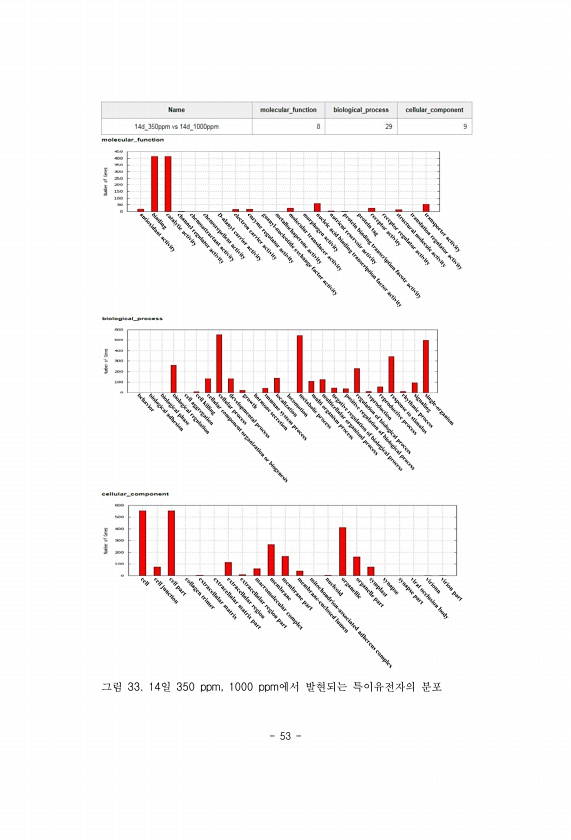 53 그림 33. 14일 350 ppm, 1000 ppm에서 발현되는 특이유전자의분포