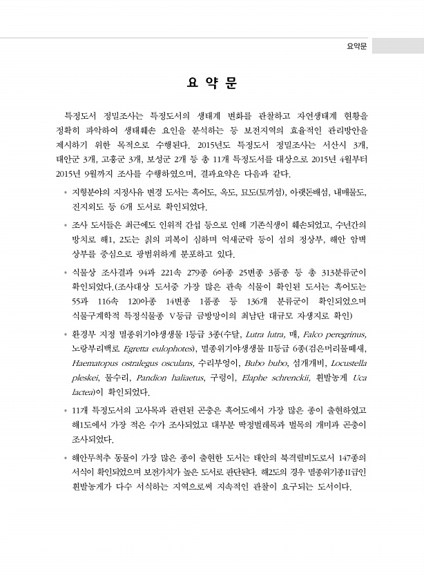 제목 : (2015) 특정도서 정밀조사 : 서산, 태안, 고흥, 보성권역