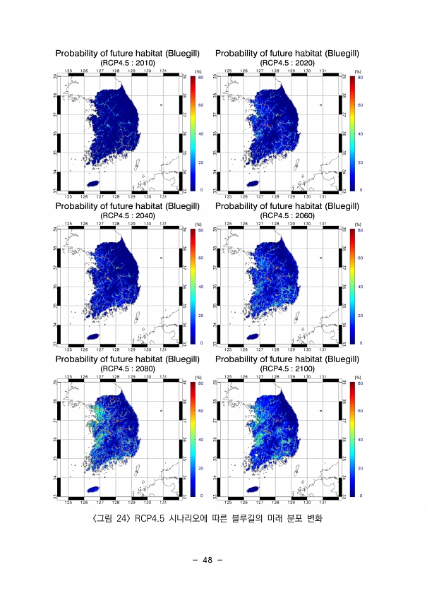 48 그림 24 RCP4.5 시나리오에 따른 블루길의 미래 분포변화