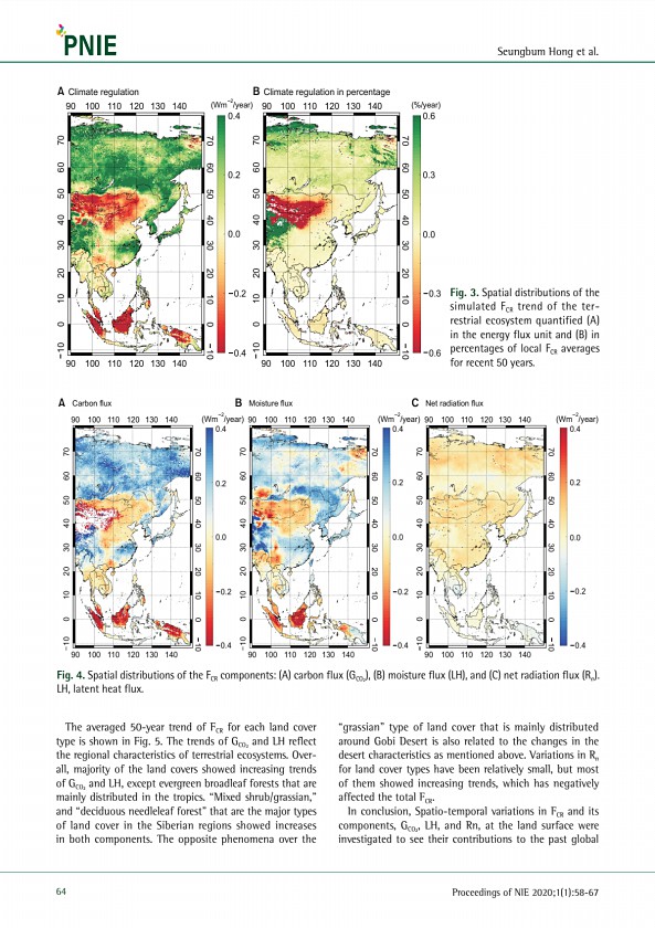 Seungbum Hong et al. 64 Proceedings of NIE 2020;1 1 58-67 The averaged 50-year trend of FCR for each land cover type is shown in Fig. 5. The trends of GCO2 and LH reflect the regional characteristics of terrestrial ecosystems. Overall, majority of the land covers showed increasing trends of GCO2 and LH, except evergreen broadleaf forests that are mainly distributed in the tropics. “Mixed shrub/gra...