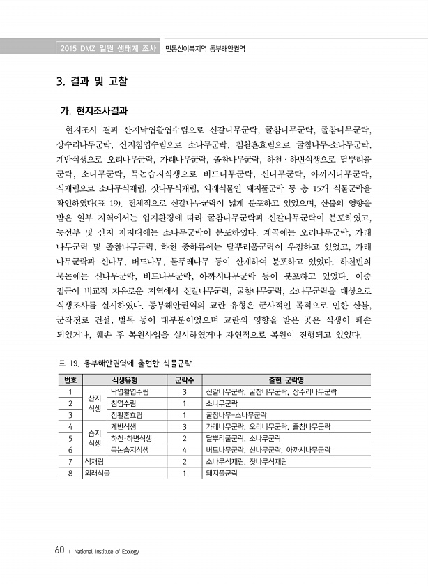 제목 : (2015) DMZ 일원 생태계 조사 :민통선이북 동부해안권역