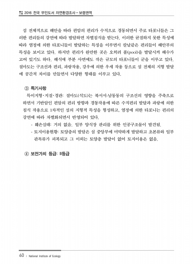 제목 : (2016) 전국 무인도서 자연환경조사 : 보령권역