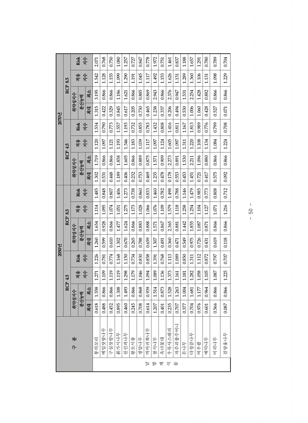 2050 2070 RCP 4.5 RCP 8.5 RCP 4.5 RCP 8.5 Risk Risk Risk Risk ? ? 0.618 1.558 1.271 1.226 1.260 1.654 1.114 1.485 1.302 1.719 1.120 1.534 1.315 3.195 1.542 2.071 ? 0.488 0.866 1.109 0.781 0.599 0.928 1.095 0.848 0.531 0.866 1.097 0.790 0.422 0.866 1.128 0.768 ? 0.452 0.866 1.119 0.774 0.610 0.866 1.074 0.807 0.448 0.866 1.121 0.773 0.329 0.866 1.155 0.750 ? 0.895 1.308 1.119 1.168 1.302 1.477 1.05...