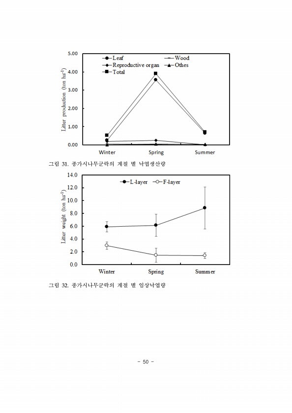 50 그림 31. 종가시나무군락의 계절 별 낙엽생산량 그림 32. 종가시나무군락의 계절 별임상낙엽량