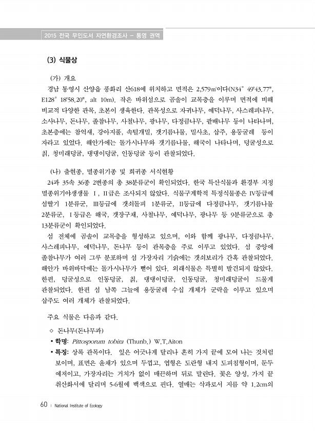 제목 : (2015) 전국 무인도서 자연환경조사 : 통영 권역