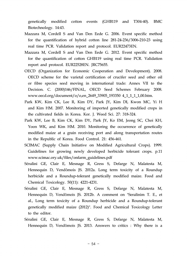 제목 : 유전자재조합생물체(LMO)의 동시 검출을 위한 multiplex-PCR법 개발(III)