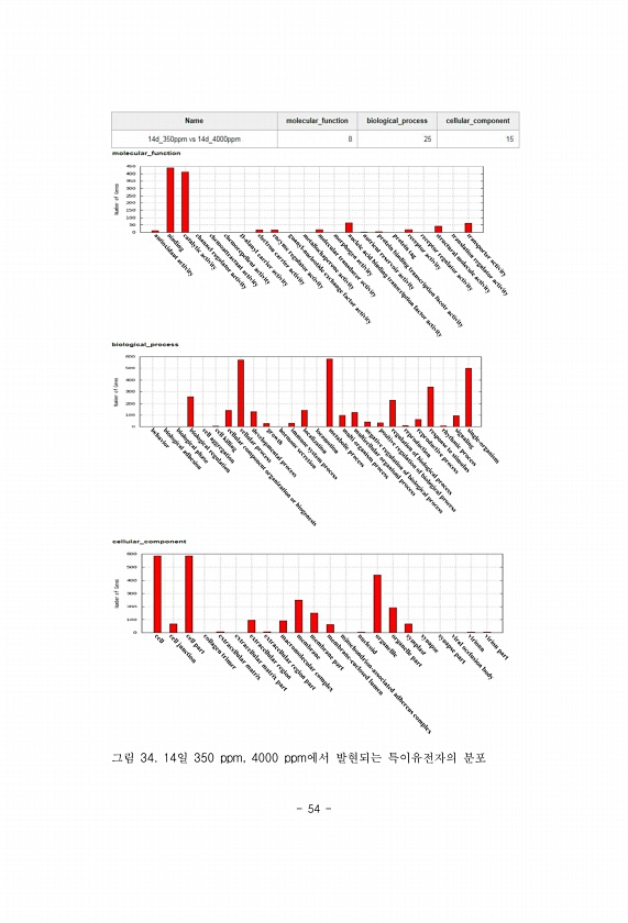 54 그림 34. 14일 350 ppm, 4000 ppm에서 발현되는 특이유전자의분포
