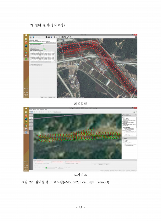 45 2 실내 분석 정사보정 좌표입력 모자이크 그림 22. 실내분석 프로그램 eMotion2, Postflight Terra3D