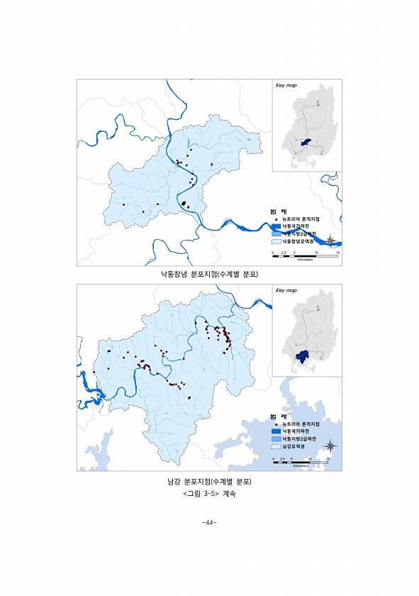 -44- 낙동창녕 분포지점 수계별 분포 남강 분포지점 수계별 분포 그림 3-5계속
