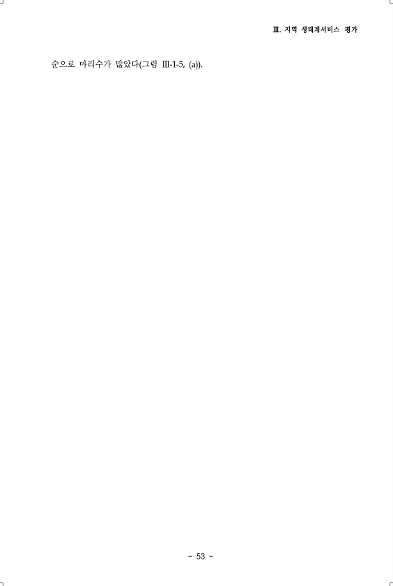 Ⅲ. 지역 생태계서비스 평가 53 순으로 마리수가 많았다 그림 Ⅲ-1-5, a
