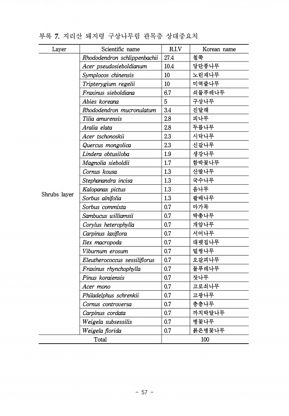 57 부록 지리산 돼지령 구상나무림 관목층상대중요치