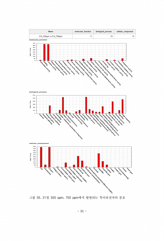 55 그림 35. 21일 350 ppm, 700 ppm에서 발현되는 특이유전자의분포