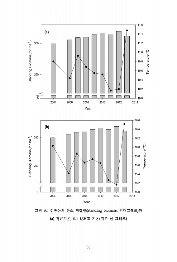 55 Year 2004 2006 2008 2010 2012 2014 Standing Biomass ton ha-1 0 50 250 300 Temperature oC 10.0 10.2 10.4 10.6 10.8 11.0 11.2 11.4 11.6 Year 2004 2006 2008 2010 2012 2014 Standing Biomass ton ha-1 0 250 300 Temperature oC 15.0 15.2 15.4 15.6 15.8 16.0 16.2 16.416.6