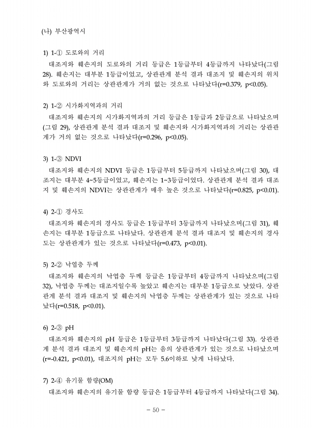 ? 1 1-① ? 1 ? 4 ? ?? ? ? 28 1 ? , ? ?r=0.379, p 0.05 2 1-② ? 1 ? 2 ? ? ? ? 29 , ? ?r=0.296, p 0.05 3 1-③ NDVI NDVI ? 1 ? 5 ? ?? ? ? 30 , 45 ? , 13 ? NDVI ? ?r=0.825, p 0.01 4 2-① ? 1 ? 3 ? ?? ? ? 31 , 1 ? ? ? ? ?r=0.473, p 0.01 ? ? ②-5 2 ? ? ? ?? 4? 1? ? ? 32 , ? ? 1 ? ? ? ? ? ?r=0.518, p 0.01 6 2-③ pH pH ? 1 ? 3 ? ?? ? ? 33 pH ? ? r=-0.421, p 0.01 , pH 5.6 ? ? ? 7 2-④ ? OM ? ? 1 ? 4 ? ?? ? ? 34