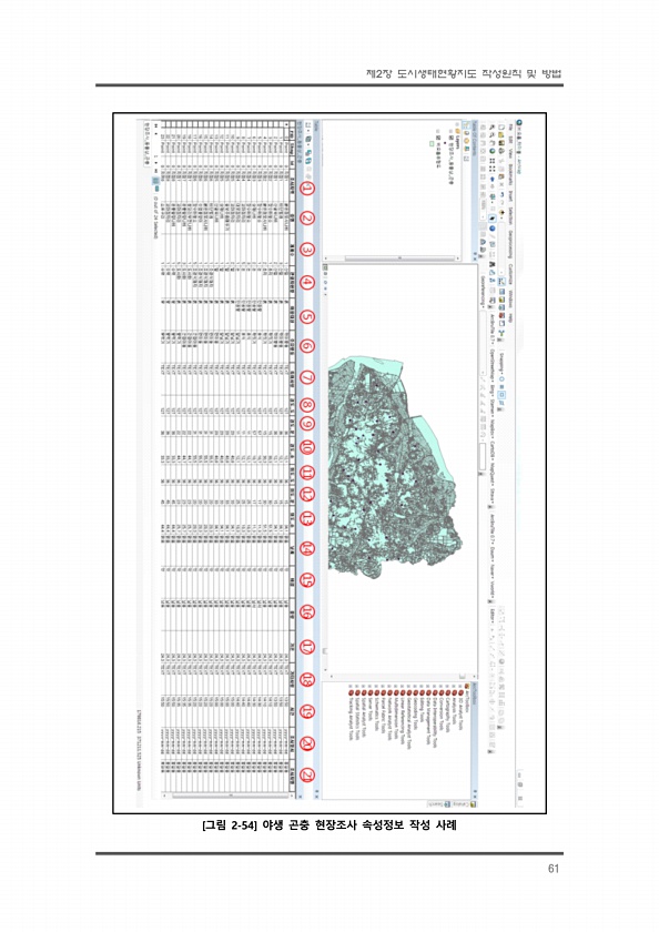 제2장 도시생태현황지도 작성원칙 및 방법 61 [그림 2-54] 야생 곤충 현장조사 속성정보 작성사례