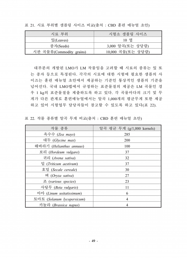 49 21. CBD Leaves 10 Seeds 3,000 Commodity grains 10,000 LMO LM LMO LM 1 kg 1,000 22 22. CBD g/1,000 kernels Zea mays 285 Glycine max 200 Helianthus annuus 100 Hordeum vulgare 37 Avena sativa 32 Triticum aestivum 37 Secale cereale 30 Oryza sativa 27 various species 23 Beta vulgaris 11 Linum usitatissimum 6 Solanum lycopersicum 4 Brassica napus4