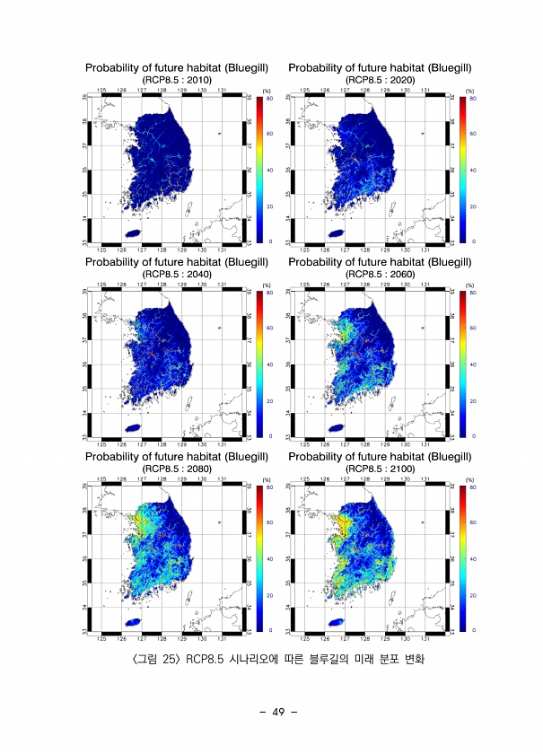 49 그림 25 RCP8.5 시나리오에 따른 블루길의 미래 분포변화