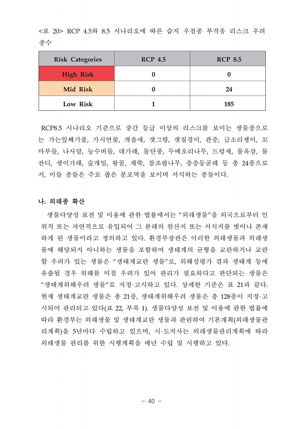 제목 : (2018) 생태계 기후변화 리스크 평가 및 적응대책 연구
