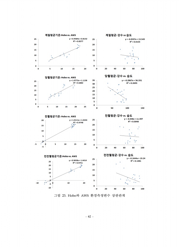 62 그림 23. Hobo와 AWS 환경측정변수상관관계