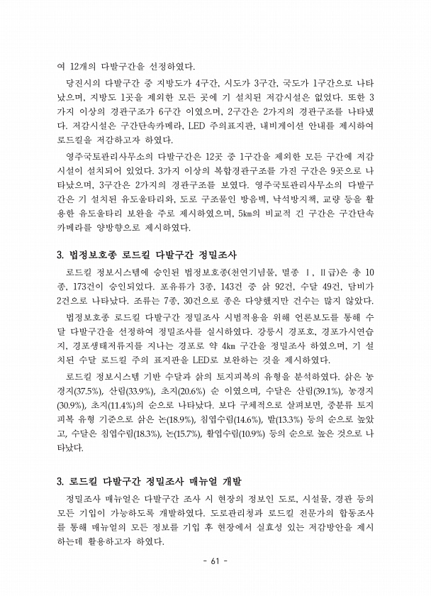 제목 : (2019) 로드킬 다발구간 정밀조사