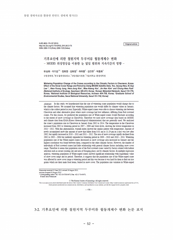 52 기후요인에 의한 철원지역 두루미류 월동개체수 변화 논문 표지 통합 생태자료를 활용한 한반도 생태계 평가 II