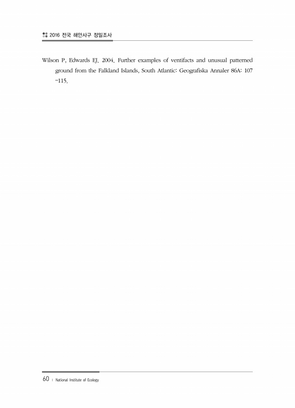 2016 전국 해안사구 정밀조사 60 ? National Institute of Ecology Wilson P, Edwards EJ. 2004. Further examples of ventifacts and unusual patterned ground from the Falkland Islands, South AtlanticGeografiska Annaler 86A107?115.