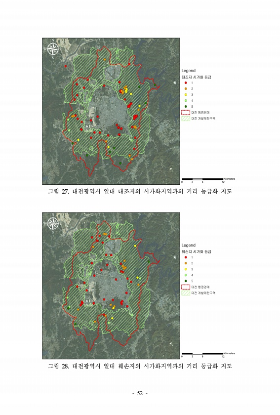 그림 27. 대전광역시 일대 대조지의 시가화지역과의 거리 등급화 지도 그림 28. 대전광역시 일대 훼손지의 시가화지역과의 거리 등급화 지도 52